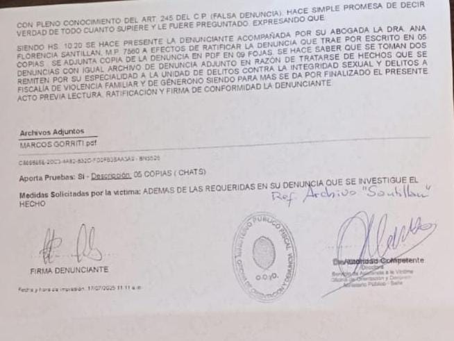 La denuncia ingresó a la fiscalía de Violencia Familiar y de Género y ya está siendo investigada, lo que destaría un escándalo a semanas del cierre de listas.